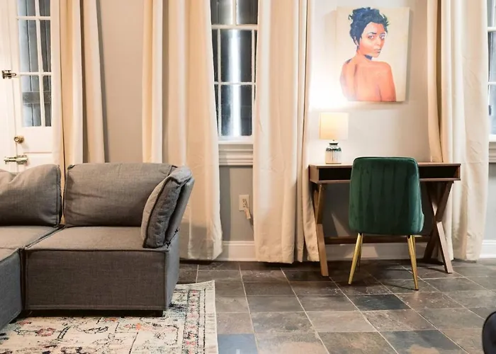 Die Villa Monthly - Dumaine Historic Carriage House bietet Gästen Selbstversorgereinrichtungen wie eine komplette Küche sowie ein Essbereich. Sie können auch eine Kaffee-/Teemaschine, einen Kühlschrank und einen Herd nutzen, um Ihre eigene Mahlzeit zuzubereiten. Ungefähr 1 km von hier entfernt finden Sie das Restaurant Cafe Du Monde, das leckere Gerichte serviert. Der Flughafen New Orleans Lakefront liegt 5 km entfernt, während der Busbahnhof Elk Place and Canal in unmittelbarer Nähe von der Unterkunft ist.
